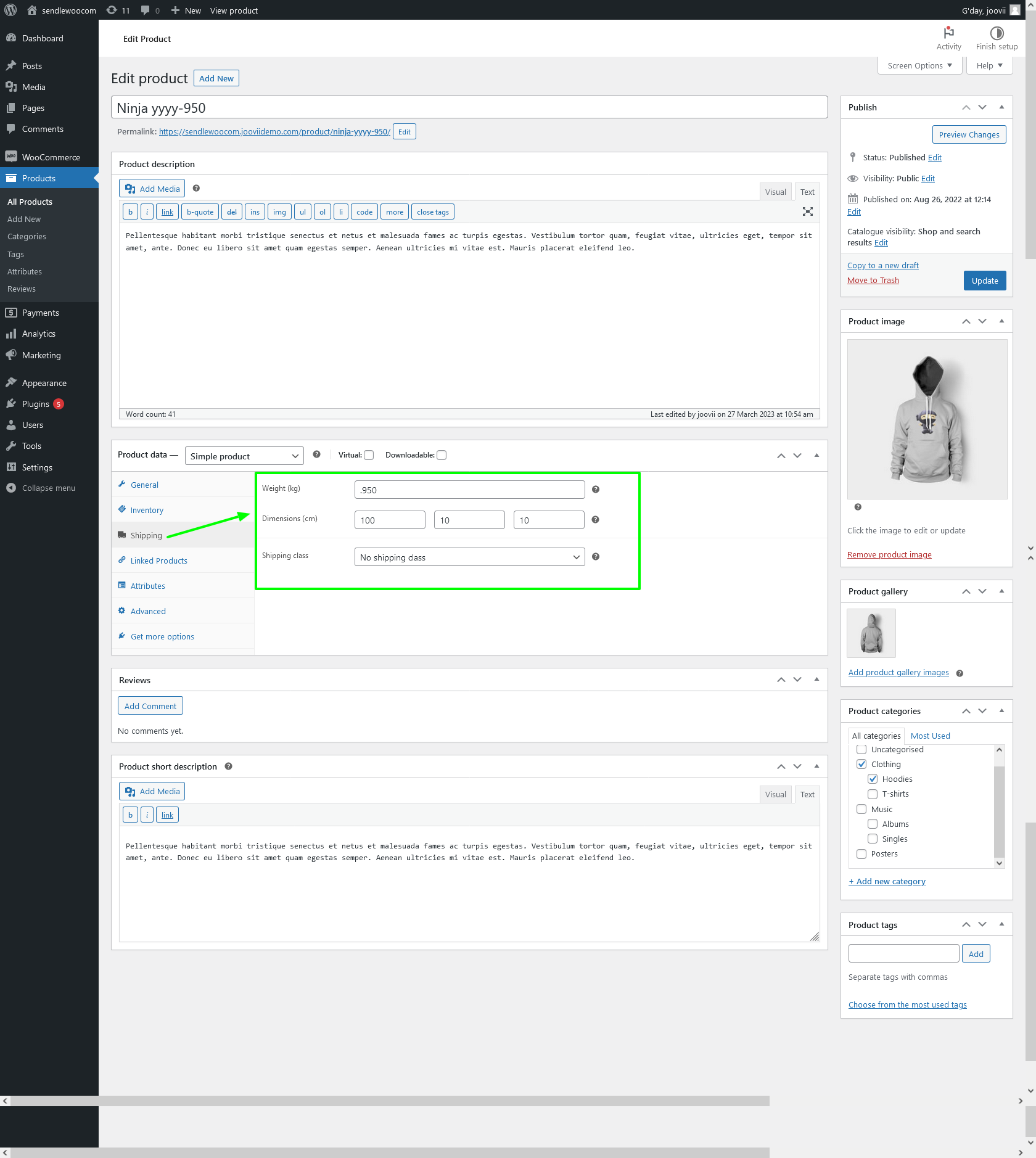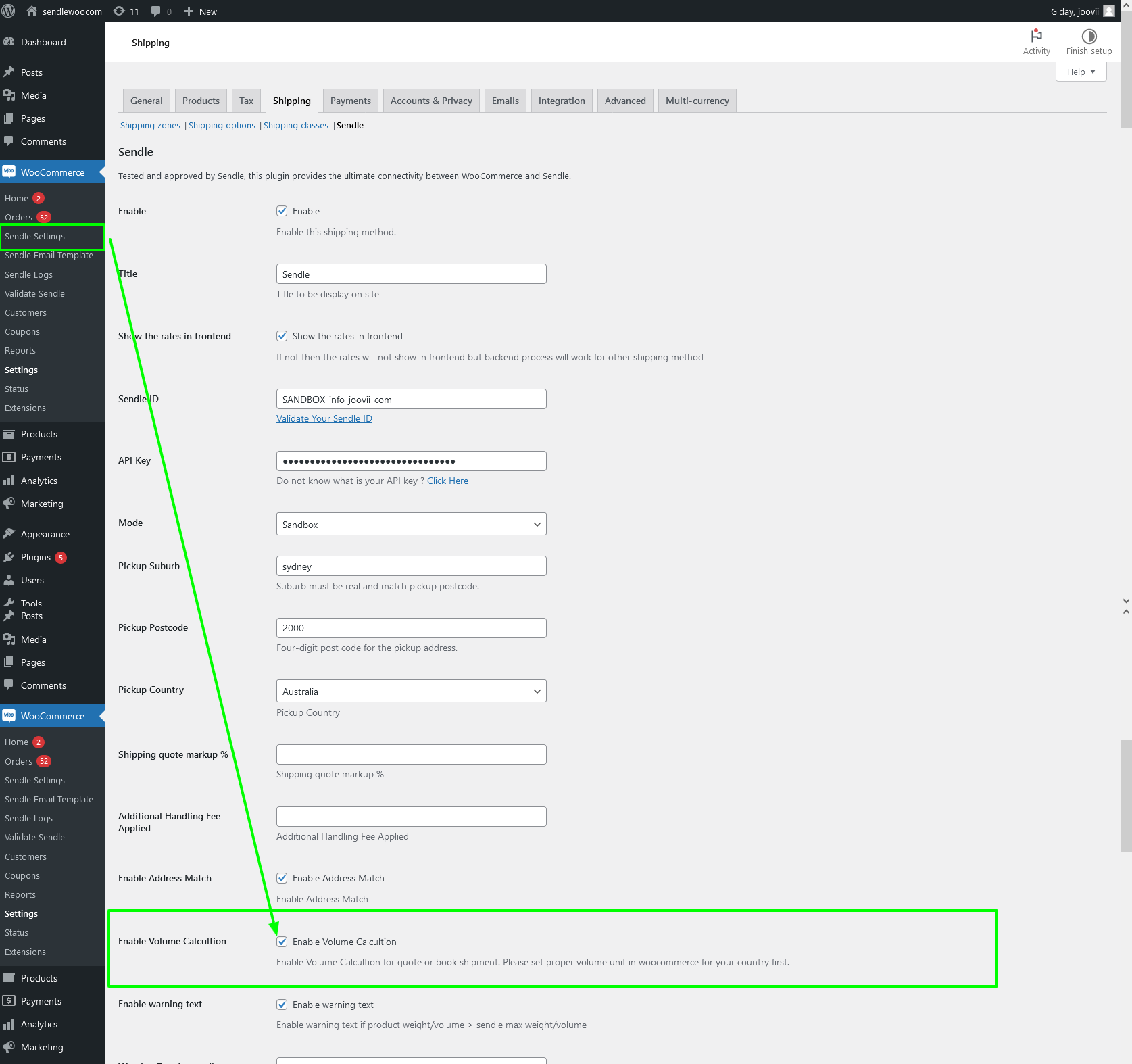 Also to use volume of the product in cart shipping calculation you have to enable “volume calculation” in the sendle setting like the following screenshot.