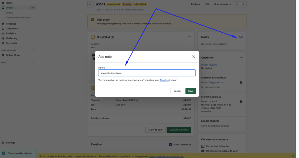 To import any old or missing order to our app you have to just edit the order in shopify or simply add some order note then you can find that order in our app. Then you can see or find that order in our app.