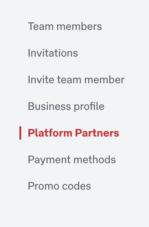 3. Then in the left menu select Platform Partners