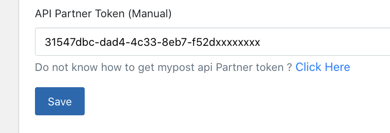 6. Paste into the field for API Partner Token (Manual) and Save