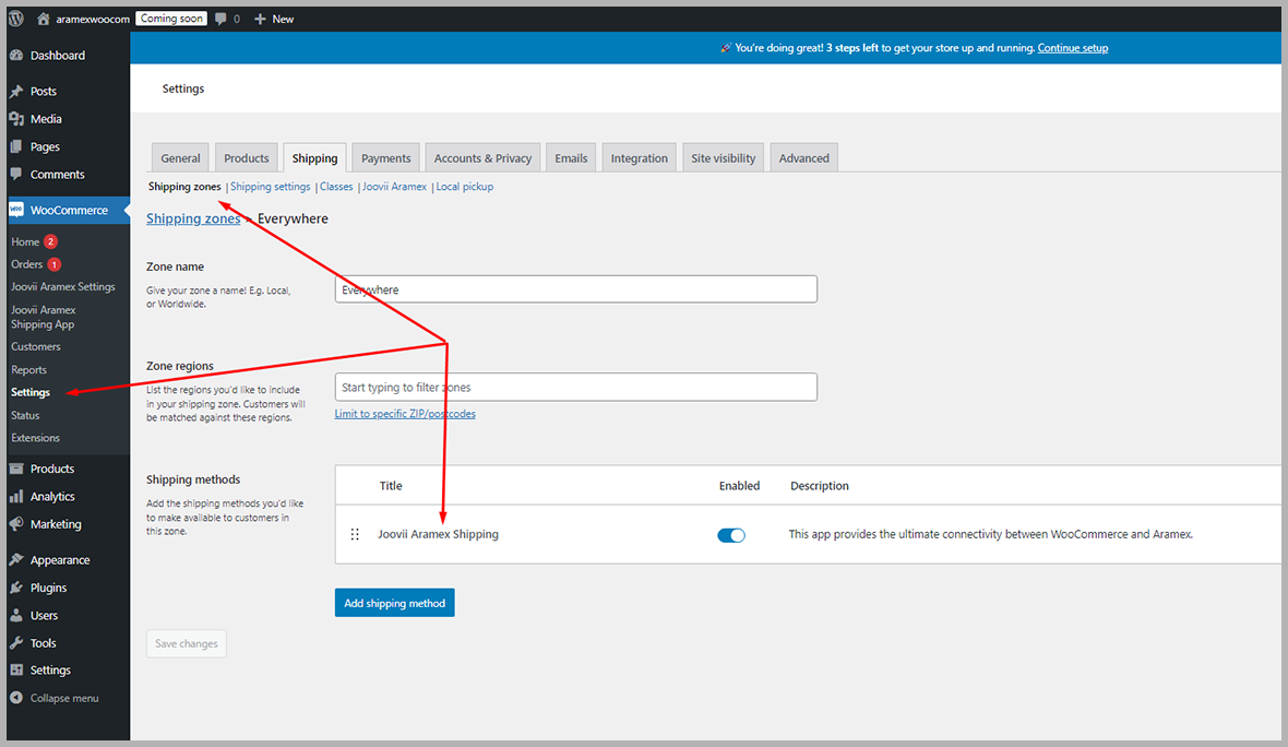2. Joovii shipping is added to the proper shipping zone