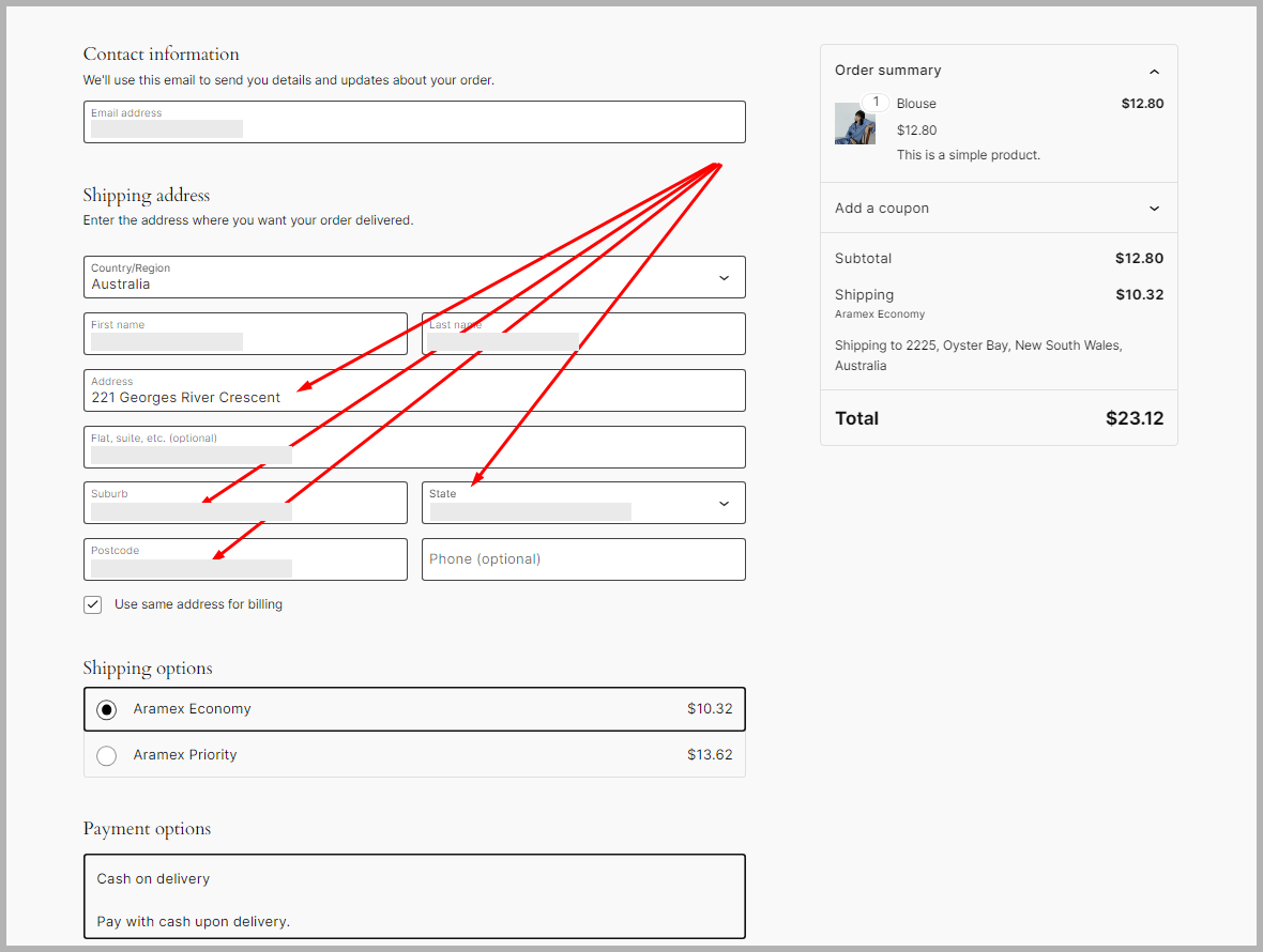 4. A valid customer address is added in the checkout