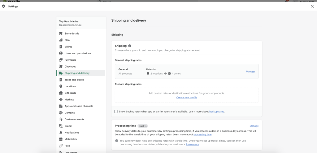 The following outlines the process for setting up shipping quotes in shopify stores. This is completed in the Shopify store settings not the app itself. Here you will select the Sendle Booking app as 3rd party carrier rates.