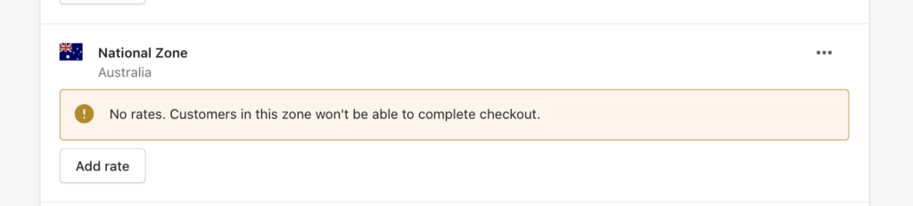 Select the zone you wish to apply shipping rates to, for example National, international.