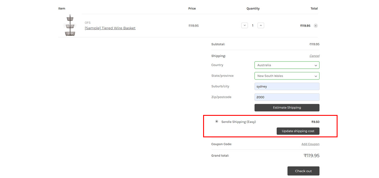 Display live quotes from Sendle based on item quantity and weight of products added to the cart. The app also utilises store address and customer delivery address to generate accurate shipping quotes