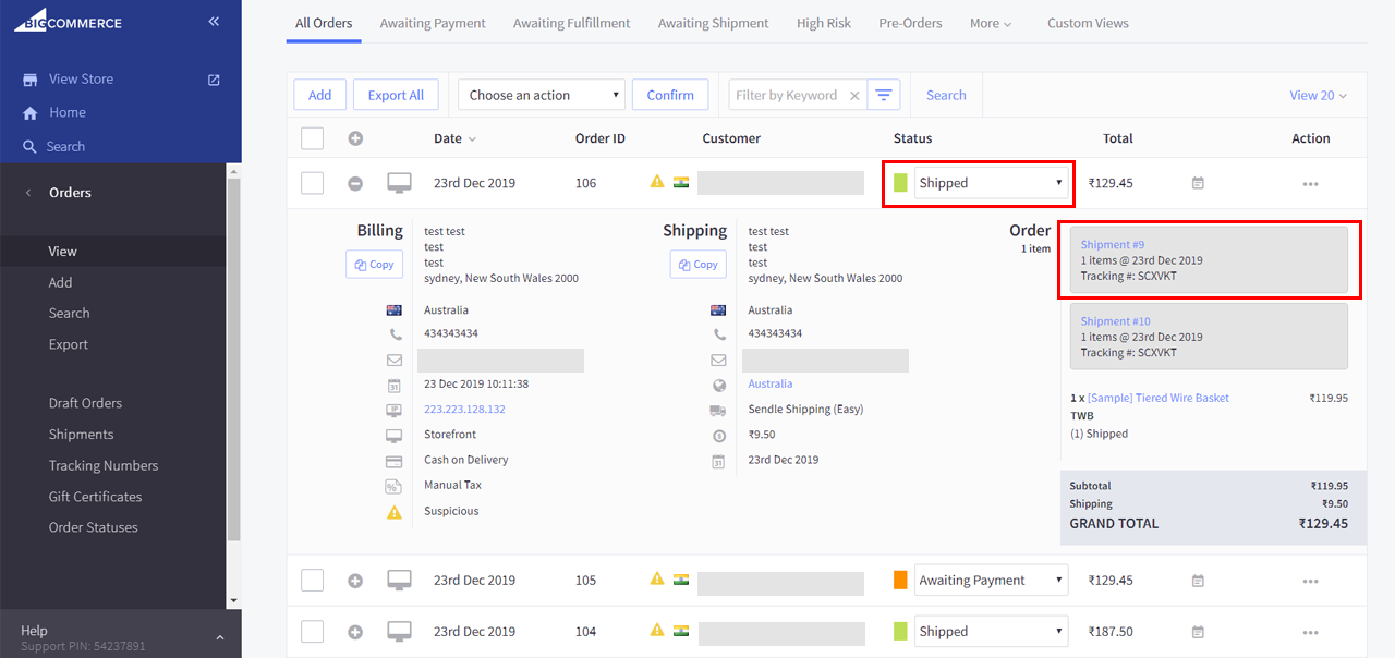 store admin has to change the order status to “Shipped” to book the sendle shipment and the app will then book it and add the sendle order id and tracking number to the order.