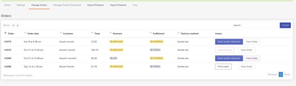 When placing bookings from the orders list, merchants may book using the sendle satchel by selecting “View Order” on the orders list