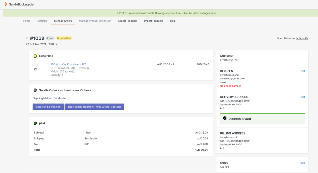 Book Sendle Shipment – Normal booking using size/weight calculated