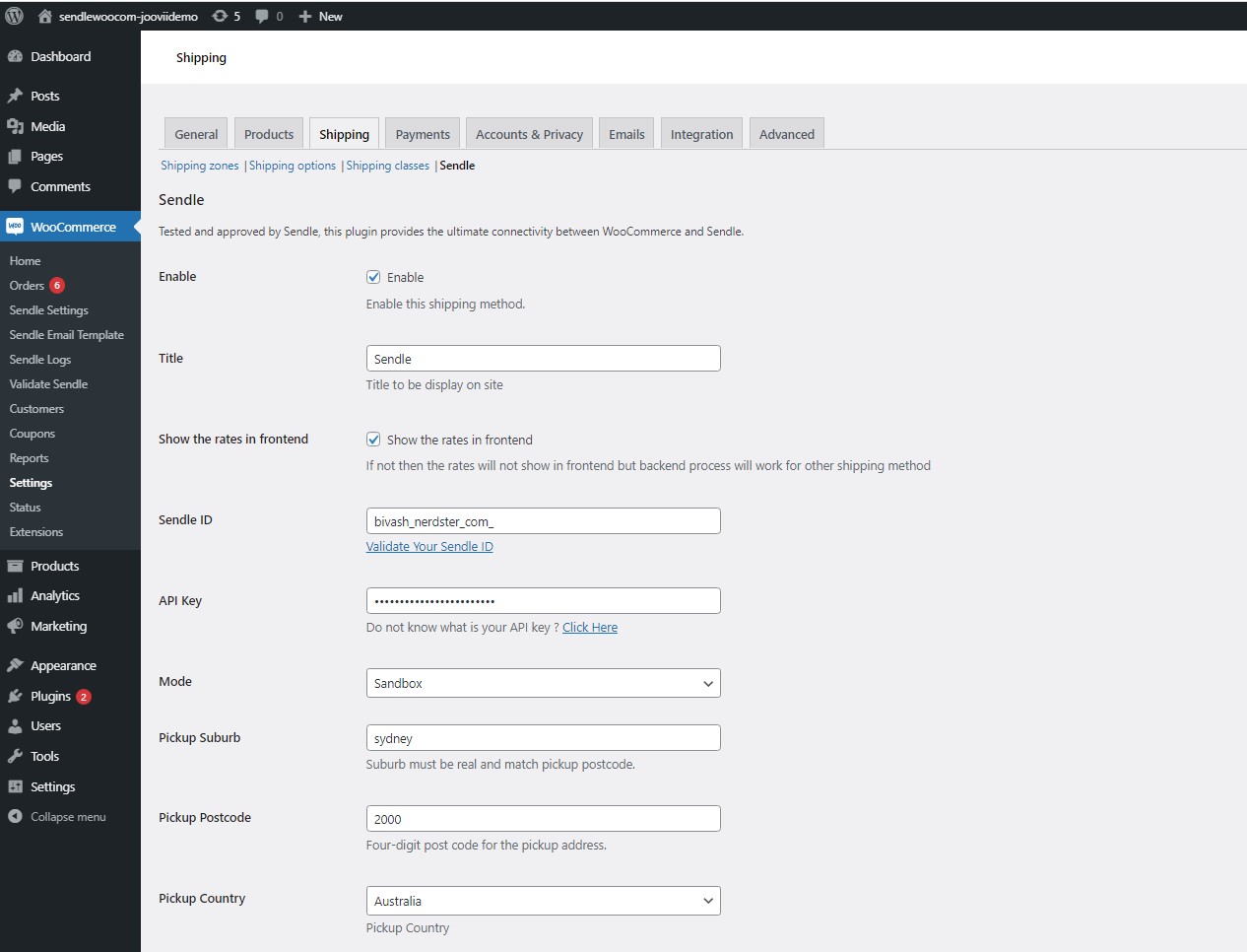 12. Version 2.2.4 :: Added the following. Added log table and a page for showing logs. Added a page to validate sendle api key and id. Added post to sendle for any shipping method. Fixed some address/zipcode issue. Added 3 new menu in admin under woocommerce menu for better navigation. Added a page in admin to validate shipping with any param. Fixed date_default_timezone for pickup date. Change state_name from state_code to sendle order. Remove company from address line 2. Set default title for shipping rate. Added zipcode city autocomplete.