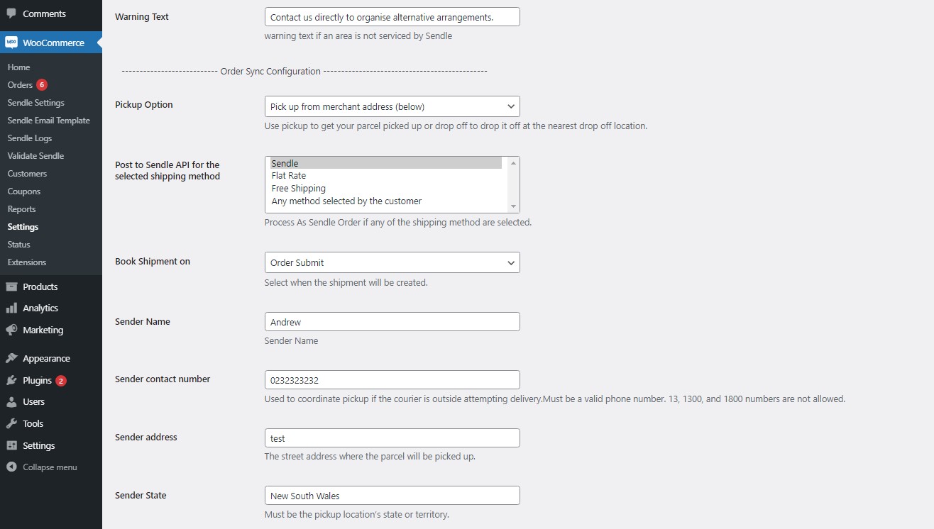 • Post to Sendle API for the selected shipping method [Flat rate and Free Shipping].