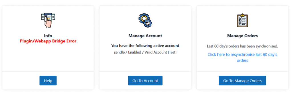 For synchronizing Orders between Joovii WP Sendle Plugin and Joovii Sendle WebAPP, it is required that your WordPress server is open to handle external request. If the WebAPP finds it difficult to communicate, you may see a highlighted message “Plugin/Webapp Bridge Error” appearing on your Home Page like this ..