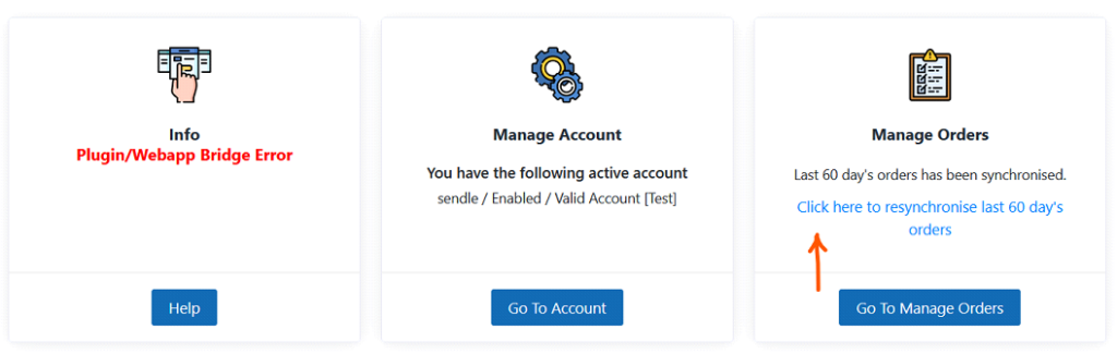 There are couple of ways that single order or multiple orders in your Woocommerce Store are synchronized with WebAPP. ⦁ You can import all orders from WooCommerce store from inside your WebApp. Goto Home Page in your webAPP. Now click on “Click Here to reSynchronize” as shown in the Image below.