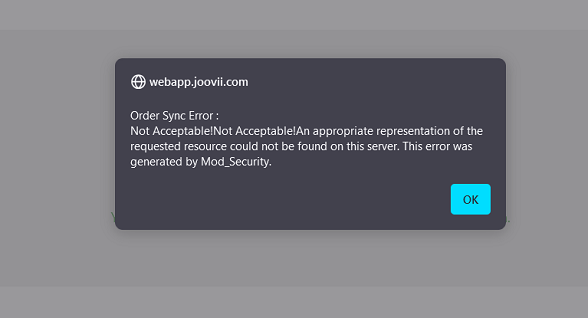 If there is any problem in the communication between Joovii WP Sendle Plugin and Joovii Sendle WebAPP ( as discussed in the beginning of this article ), you may get an popup message to know about this problem.