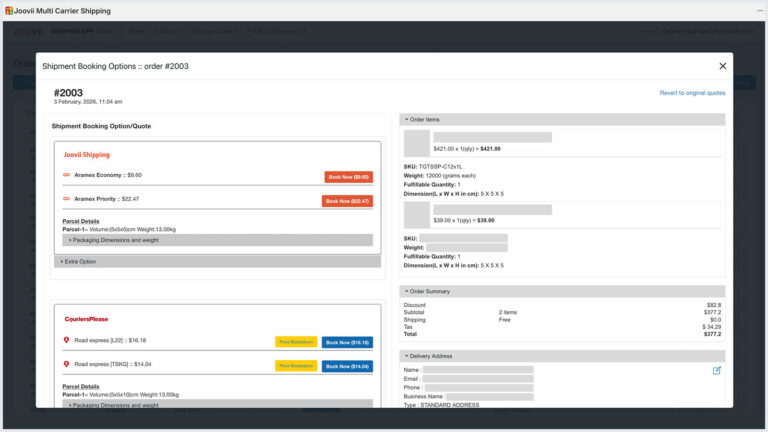 Once enabled you will now see quotes in your View Booking Page and if CCS is enabled are also able to turn on live quotes from Joovii Shipping at Checkout.